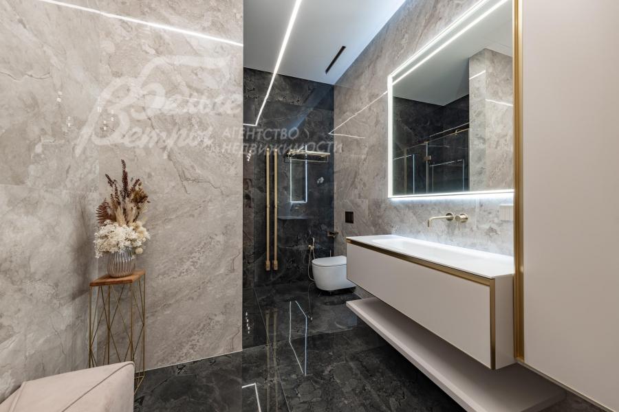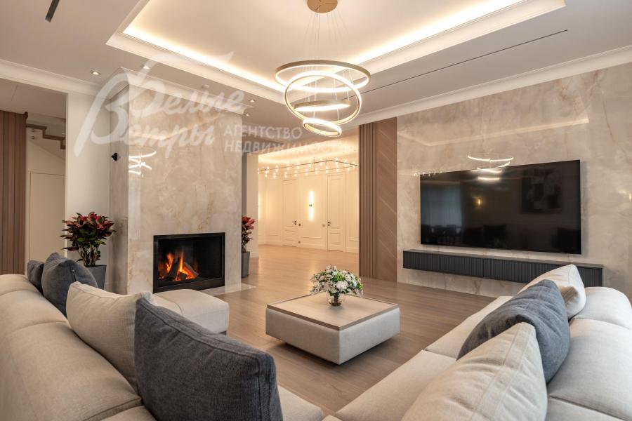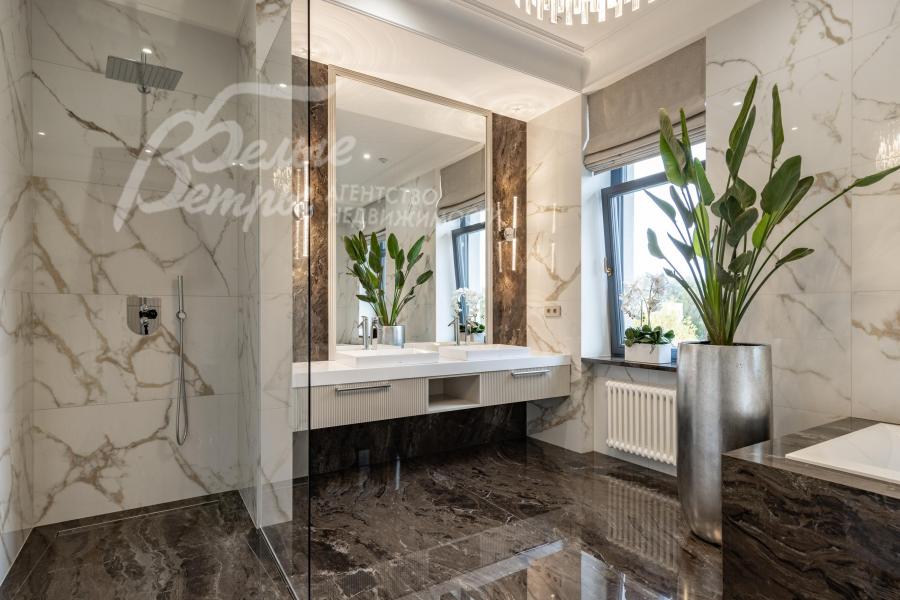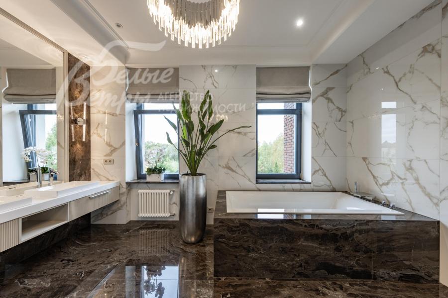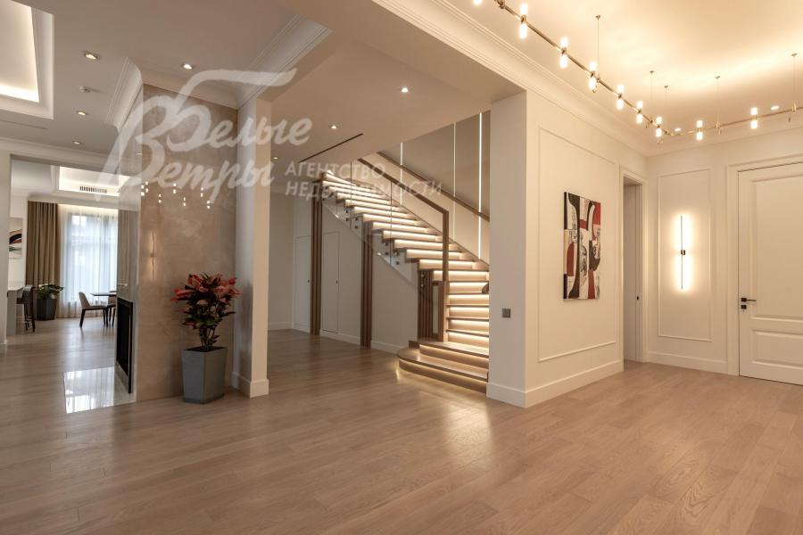 Инженерное обеспечение: установлено 2 котла Waillant мощностью 70 и 48 кВт, бойлер 300 л. Две очистки воды на скважину и на центральное водоснабжение. Приточная вытяжная вентиляция, встроенная система увлажнения воздуха, канальное кондиционирование. Центр управления системой "Умный дом" с подключением к Алисе – электрические шторы, освещение, отопление, кондиционирование.