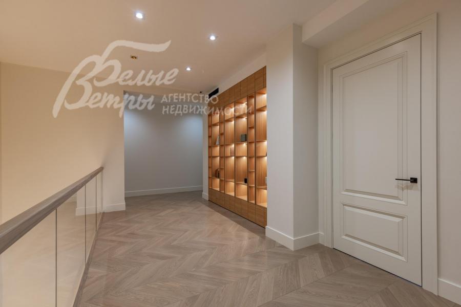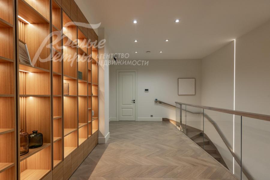 2-ой этаж: хозяйский блок с большой гардеробной и санузлом, спальный блок с двумя спальнями, с двумя гардеробными и санузлом, спальня с санузлом, спортзал/игровая, зона библиотеки