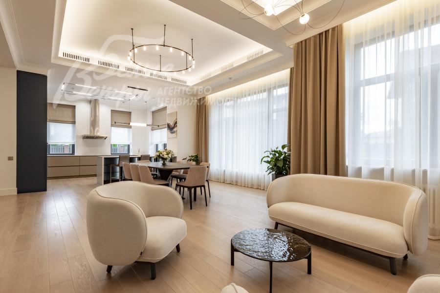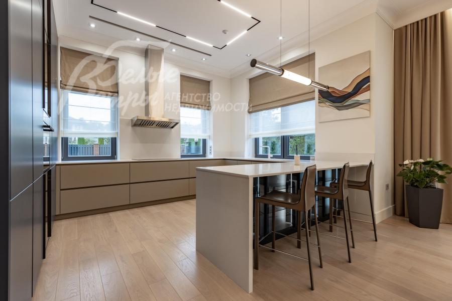 Мебель, оборудование: установлена немецкая кухня со встроенной техникой Kuppersbusch, с вытяжкой Marte Pro c вентиляцией на крыше, два холодильника Liebherr.