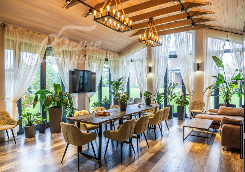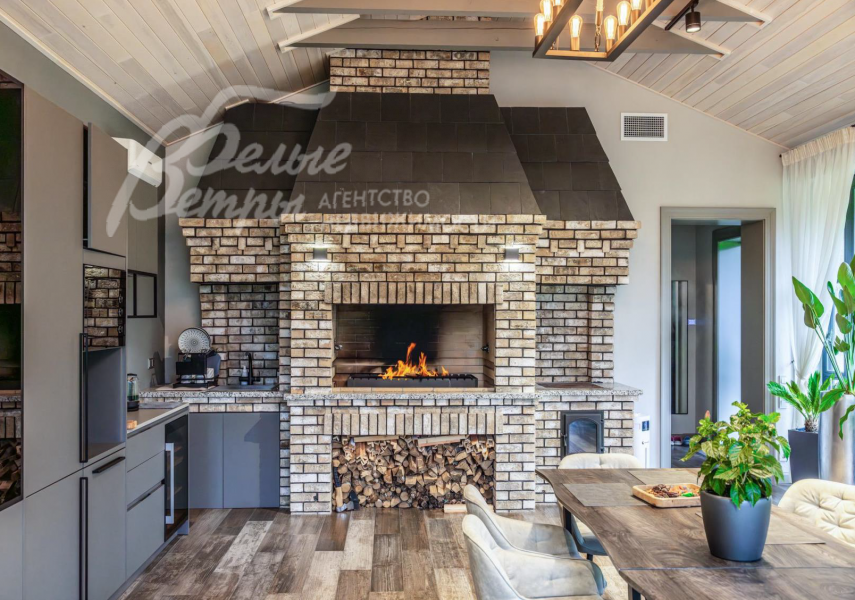 Дополнительные строения: - Зона барбекю 105 кв.м – шашлычная зона, зона отдыха, кухня, с/у. В помещении кондиционирование, панорамное остекление с механизмом полного открывания.